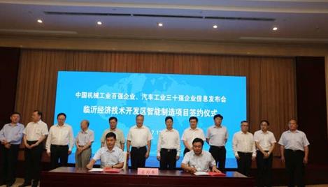 昨日下午,中国机械工业百强企业、汽车工业三十强企业信息发布会临沂经济技术开发区智能制造项目签约仪式举行,沈阳机床临沂i5智能工厂项目等5个项目签约。