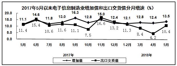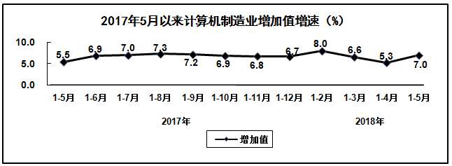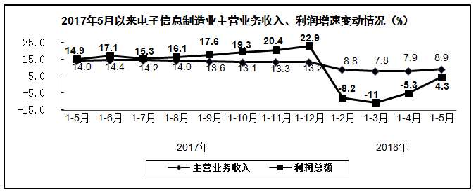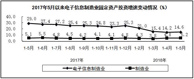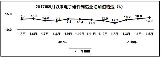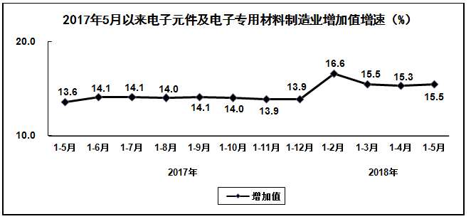 2018年1-5月,电子信息制造业继续保持平稳增长态势,生产和投资增速在工业各行业中保持领先水平,产业运行总体保持稳健,为全年产业持续健康发展打下坚实基础。