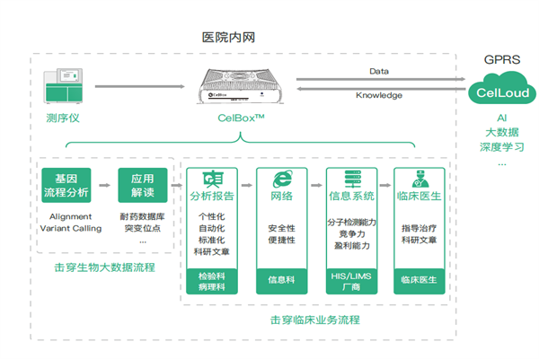 华点云自主研发的另一产品CelBox基因解读智能盒子,作为数据处理本地化产品,也可以帮助医院实现从测序数据到分析、解读、报告交付一体化的解决方案。