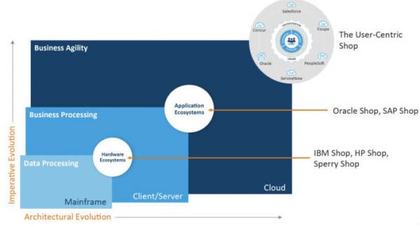 而这是人们对商业计算的思考方式的一代转变。在早期,商业计算领导者将谈论成为“IBM商店”或“Sperry商店”,宣称他们主要致力于生产大型机和数据处理硬件的供应商。随之而来的是“Oracle商店”或“微软商店”或“SAP商店”,其中用于处理商业信息的软件堆栈被认为是核心。现在,人们不再将数据处理和业务流程视为自身的目标,而是认识到业务敏捷性才是真正重要的。人们将最有效的软件和云计算服务集合在一起。