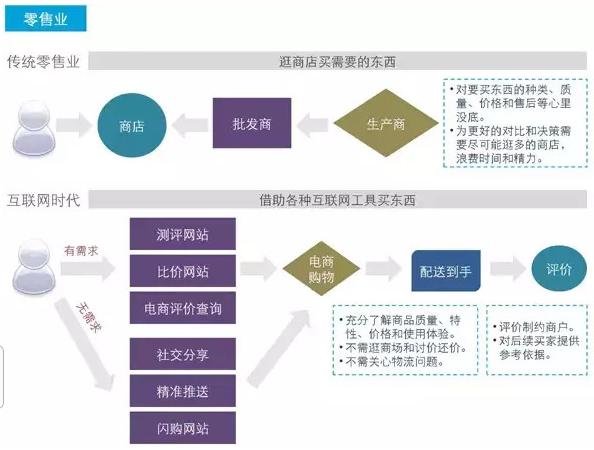 互联网最有价值之处不在自己生产很多新东西,而是对已有行业的潜力再次挖掘,用互联网的思维去重新提升传统行业。从这个角度去观察,互联网影响传统行业的特点有三点: