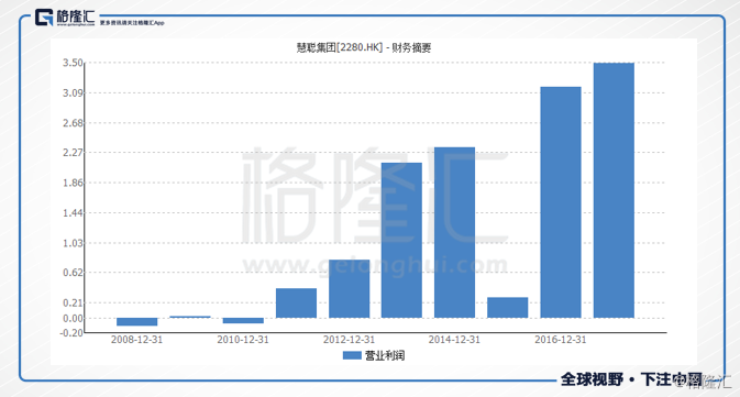 利润方面,慧聪近几年的利润增速也相当可观。虽然在2015年,慧聪网多次出手收购或投资业务,所涉金额超过20亿元的原因造成利润降幅明显,但从长远看,随着这些收购或投资的业务的业绩逐步有所贡献,未来的利润将会呈现巨大的提升。