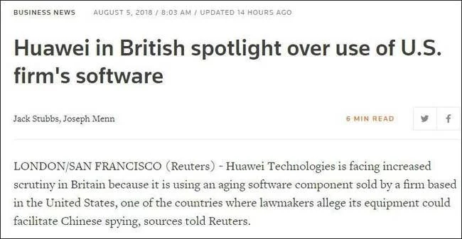 据路透社消息称,由于使用来自一家美国公司的过时软件,华为在英国正面临调查。