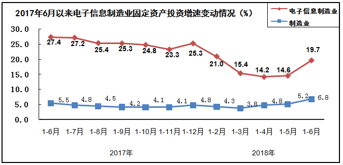 2018年上半年,电子信息制造业继续保持平稳增长态势,生产和投资增速在工业各行业中保持领先水平,产业运行总体保持稳健,为全年产业持续健康发展打下坚实基础。