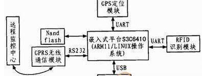 物联网车载系统采用ARM11嵌入式处理器在Linux平台上进行开发,采用了GPS定位、GPRS通信技术、RFID无线射频技术等。车载终端的底层基于嵌入式平台,将嵌入式软件植入物流车载终端,通过写入的控制程序完成对其他功能模块的控制,从而实现以下功能:
