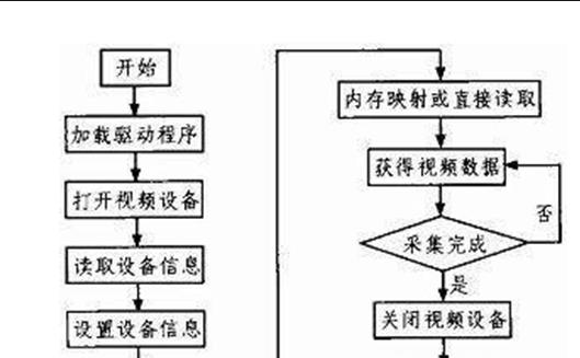本系统采用Linux2.6.36内核,它采用了UVC的驱动v412(video4linux2的简称)框架。v412为Linux视频设备程序提供了一套接口规范,包括一套数据结构和底层v412驱动接口。图像采集的处理流程如图4所示。