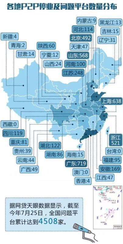 截至2018年7月底,中国P2P网贷行业累计平台数量达到6385家(含停业及问题平台),其中问题平台累计为2286家,7月新增问题平台165家,创近一年以来新高,同时这个数字还在不断增加。据说目前涉案金额最高可达万亿级别,受害者众多。其中有些平台不乏有官方背书。