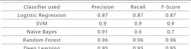 在各种分类器中,随机森林和基于深度学习的方法比其他方法更好。所示结果基于5,500个训练实例。本实验中使用数据集的大小相对小于典型的基于深度学习的系统。随着训练数据的增加,基于深度学习的系统和随机森林分类器的性能将会进一步提升。