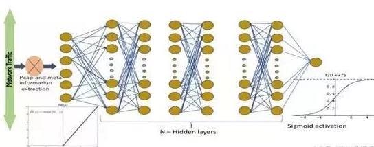请注意,源IP/端口、目标IP/端口和协议字段已经从实例中删除,因为它们会导致模型过拟合。我们使用具有N隐藏层的深度前馈神经网络来处理其他所有特征。神经网络的架构如图5所示。