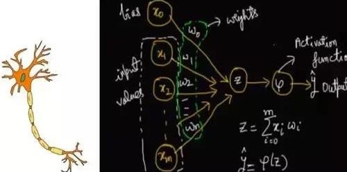 图1:我们能获得的最大灵感来自大自然——图中描绘了一个生物神经元和一个人工神经元