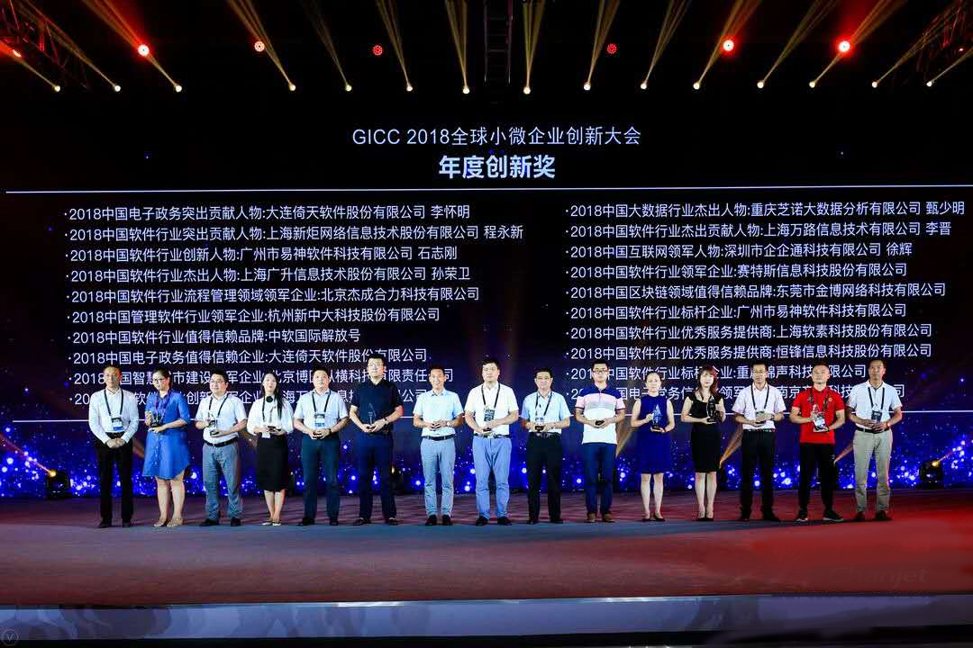 8月8日,在中国软件行业协会和GICC组委会联合主办的GICC全球企业创新大会暨2018中国软件行业评选中,恒锋信息科技股份有限公司被授予“2018中国软件行业优秀服务提供商”的称号。该奖项是中国软件行业协会根据软件企业在商业模式创新表现评选而出的,是对恒锋信息在软件研发创新、应用和服务的高度认可。