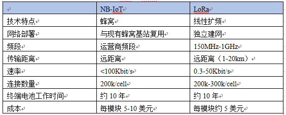 表 NB-IoT与LoRa的技术参数对比