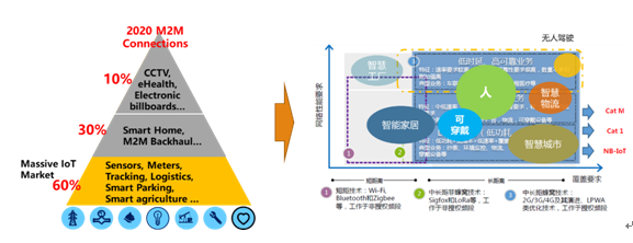 二是技术的共生性。同一应用场景往往包含多种类型的连接需求。以车联网为例,车内的连接需求包括无人驾驶(超高速率、超高可靠性),车载娱乐(中速率、中度可靠),车体感知(低速率、低可靠)等多种类型,需要不同的连接技术共生、协同,才能够提供完善的整体解决方案。因此,物联网将出现不同技术类型百花齐放、共生共存的局面。
