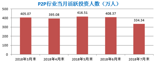 网贷之家数据显示,2018年上半年,网贷行业累计资金净流入924.6亿元,而2018年7月单月净流出730.88亿元。从投资人气看,2018年7月当月活跃投资者334.34万人,较6月份锐减74.03万人。