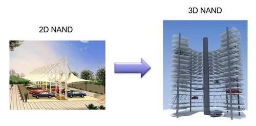 传统的闪存工艺是我们叫做2D闪存,如今发展碰到阻碍,接近了工艺极限。在这样的背景情况下,3D NAND闪存应运而生。