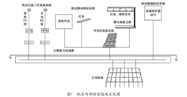 系统主要包括公用接地(大楼联合接地排)、等电位连接、防雷接地(浪涌保护器)、机房工作接地、机房静电释放系统(保护接地)等。如上所述,除防雷接地外,其它各项接地也是防雷措施的一部分,它们互不可分,相互渗透,共同组成了机房综合防雷系统。