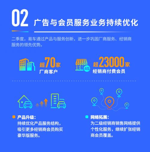 细看易车的Q2财报我们发现,易车不仅通过产品与服务创新,进一步巩固了自身在厂商服务、经销商服务上的领先优势: