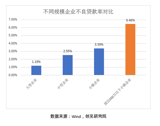 而对于坚持“两个毫不动摇“的中国经济来说,面对来自内部去杠杆+外部贸易摩擦的经济大考,公有制经济/大型企业与非公有制经济/小微企业的分差正在显著拉大:授信500万以下小微企业的“不及格率”(不良贷款率)如今已达大型企业的5倍之多。