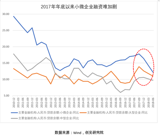 此时,继续展示大型企业PMI始终高于50的韧性固然可以提神壮胆,但继续忽视小型企业PMI持续萎缩的代价正越来越大:从供给角度看,进入2018年以来,小微企业贷款余额急速下行,银行已开始用脚投票“抛弃”“后进生”。