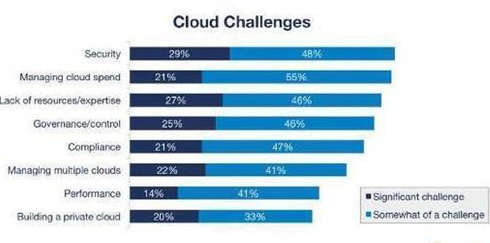 自公共云出现以来,企业一直担心潜在的安全风险,并且没有发生变化。在RightScale调查中,这是受访者提出的头号挑战:77%的人表示云安全是一项挑战,其中29%的人称之为重大挑战。
