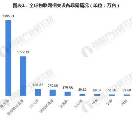 图表1:全球物联网相关设备暴露情况(单位:万台)