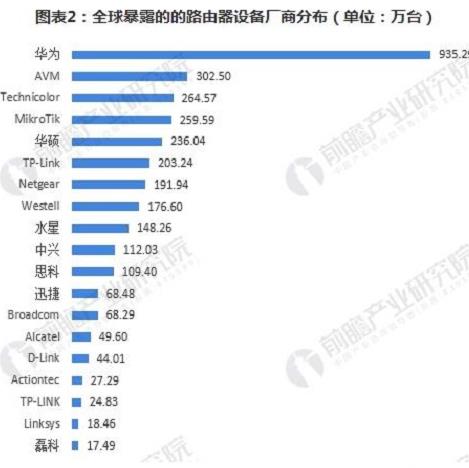 图表2:全球暴露的的路由器设备厂商分布(单位:万台)