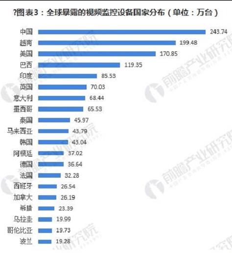 图表3:全球暴露的视频监控设备国家分布(单位:万台)