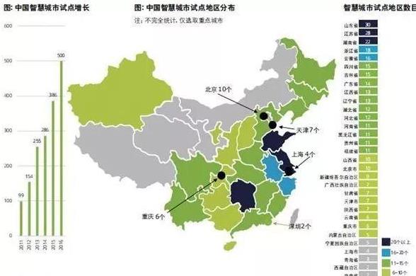 具体到我国的智慧城市建设,最早可追溯到2009年,当时北京开始实施关于智慧城市构建的目标,并随之带动“智慧北京”、“智慧广州”以及“智慧南京”等智慧城市的建设发展;“十二五规划”的推出更将“智慧城市”的理念逐步推向高峰。而当下,从国外研究机构德勤最新发布的《超级智慧城市报告》来看:在智慧城市建设上,我国已启动或在建的智慧城市几乎占据了全球已启动或在建的的一半份额,以500个在建智慧城市独占鳌头,远超排名第二的欧洲(90个)。