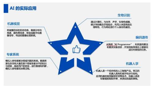 而在实际应用方面,AI主要应用在机器视觉、生物识别、编码遗传、专家系统、机器人学上。云计算则是将服务器、存储器、存储设备以及网络等资源打包成云端,为客户提供相关的按使用量付费的模式,大数据则是将结构化数据和非结构化数据形成的所有数据整合起来,用以分析发现数据背后相关关系的信息资产。