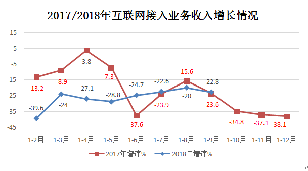 前三季度,互联网企业完成互联网接入业务收入103亿元,同比下降22.8%,降幅较一季度、上半年分别收窄1.2个和1.9个百分点。