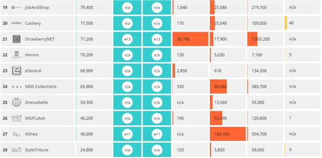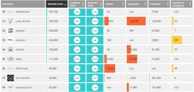以下为当地市场重点电子商务网站的流量及排名情况: