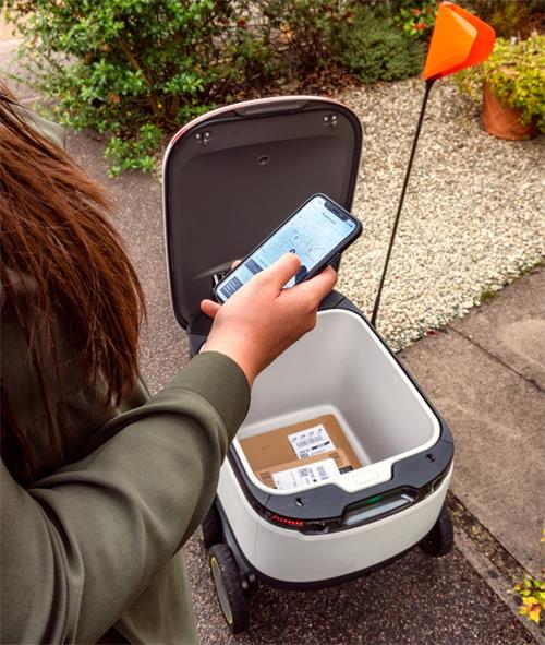 当包裹到达指定地点时,应用程序会为消费者推送通知,然后他们可以选择特定的时间,让Starship机器人将包裹送到他们期望的地点。他们也可以通过应用程序实时追踪机器人的行进路径。