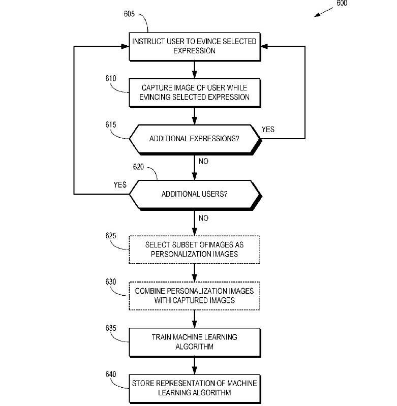 文件指出,由于VR头显往往会遮挡用户的面部,因此很难分辨出具体的面部表情。然而,可以利用机器学习算法训练系统以学习与愤怒,快乐,惊喜等相关的表情,也可以训练对眉毛和嘴唇运动的识别等等。