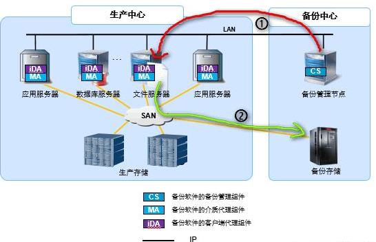 LAN_Base备份网络所有的备份控制流和数据流都要通过现有的LAN网络进行传输,所以优点是投资小、成本低,但是缺点是占用现有LAN网络带宽,备份性能会受限;