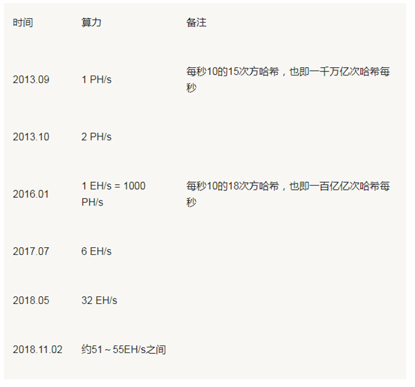 比特币全球算力表(2013-2018)