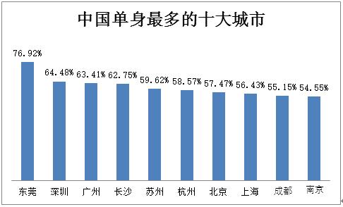 东莞更以76.92%的单身比例位居中国城市的榜首