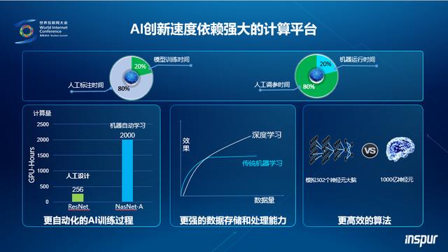 当前,AI产业已经度过了产业导入期,AI公司之间的竞争更多是创新速度的竞争。好的计算平台可以加速模型训练速度,AI应用就能够更快速地适应需求的变化进行创新,从而得到更快速的推广,为企业赢得竞争力。据了解,在AI模型训练过程中,人工参数调整耗时与机器运行耗时大约分别占80%和20%,如果平台性能提高一倍,那么迭代周期就能缩短10%左右。因此,人工智能所需计算量一直处于高速增长状态。另据OpenAI的分析报告,从2012年开始,AI训练所用的计算量呈现指数增长,平均每3.43个月便会翻倍,截止目前计算量扩大了30万倍。据估计,到2020年前,AI所需的计算量还会继续增长12倍。王恩东认为,要赢得创新速度,AI算力、算法等投资至关重要。