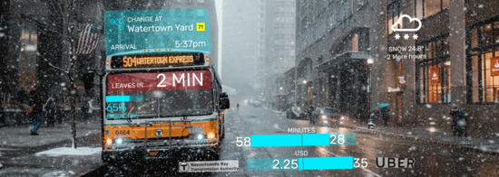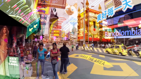 图:概念视频《HYPER-REALITY(超现实)》描绘了被虚拟信息覆盖、融合的AR城市。