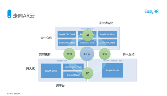 图:通过去中心化众包构建AR云的EasyAR平台具备持久化、多人共享等能力。