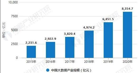 据前瞻产业研究院发布的《大数据产业发展前景与投资战略规划分析报告》统计数据显示,截止到2017年中国大数据产业规模为3820.4亿元。预计2018年中国大数据产业规模将达4974.2亿元。随着智慧城市、数字经济、新旧动能转换、转型升级等概念持续引领产业增长,预计到了2020年中国大数据产业规模将超8000亿元,达到了8354.7亿元。