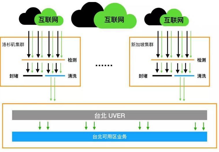 高强度DDoS攻击一直是数据中心外网面临的最大威胁之一。数据中心数量随业务发展在增加,也意味着要防守的节点在增加。各数据中心的本地清洗能力有高低,薄弱的点很难保证不被突破。那是否存在一种分布式清洗方案,可以将各机房的能力统合起来?这样各机房的本地清洗能力就不再成为瓶颈,而是成为更大整体的一部分。但要实现这一技术,灵活的公网路由选择、快速检测能力和自动化流量调度都是缺一不可,而且也没有那么简单。