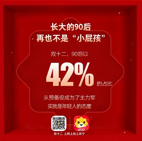 截至12日18点,90后消费者购买欲持续上涨,占到总消费者中的42%,展示出90后群体正在迅速成长,逐步成为社会中坚力量。这也是中国电商领域出现的最显著趋势之一,他们的年龄段介于19岁—28岁。对其中许多人来说,这是人生中首次成为具有独立身份的消费者。他们能自主购物并希望利用这种购买力来宣示自己的身份。对他们而言,消费是自我表达的一种体现。