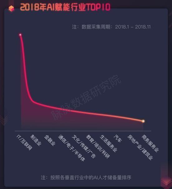 从上图的数据来看,AI人才储备量最大的垂直行业中,IT/互联网以绝对优势排在第一位,其次是制造业和金融业。通信、传媒、广告、教育、服务业、汽车、房地产也排在前十名。