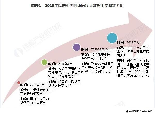 2015年以来,国家战略推进医疗机构、区域信息化及医疗大数据应用建设,促使医疗大数据产业正在加速形成。2015年8月发布《促进大数据发展行动纲要》明确了关于数据使用的总体要求;2016年6月底国务院出台《关于促进和规范健康医疗大数据应用发展的指导意见》,将医疗大数据正式纳入国家发展,其对医疗大数据融合及共享开放建设,在医疗、医药、公共卫生、医保等方面的应用,以及使用安全保障等方面进行全面规范。