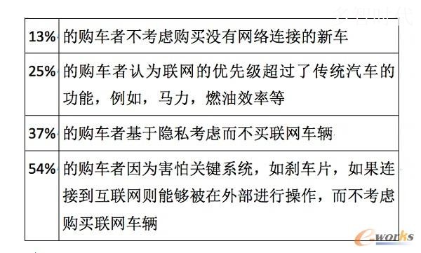 除了联网人数和设备数目预期的大幅增加,在现有的和新的市场中对应的机会也正在出现。上个月麦肯锡发表的一篇文章中提出了以下关于当今互联汽车技术实力的指标: