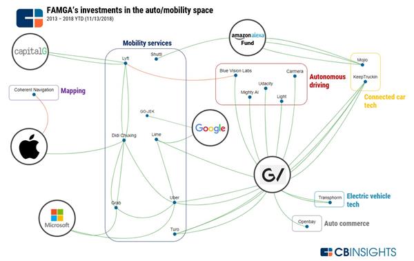本文将结合不久前 CBinsights 的一篇美国科技巨头自动驾驶发展分析,同时整合国内三大巨头百度、阿里巴巴与腾讯的战略布局,梳理出一个科技公司对于未来出行的全景图。