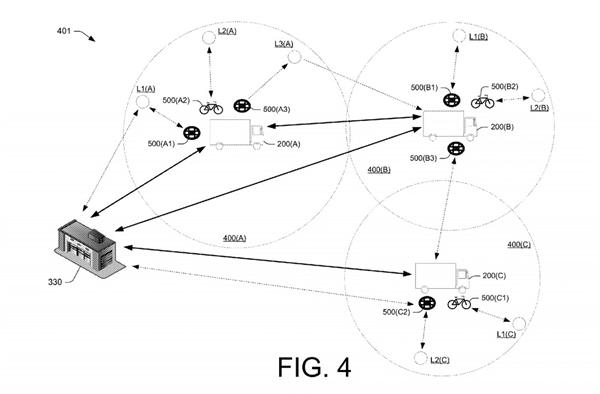 在今年 3 月份亚马逊获得的一份专利里,亚马逊展示了包裹如何从自动驾驶卡车到达「最后一公里」的运输设备,这些设备可以是汽车、无人机或者自行车,整个过程实现了自动化。