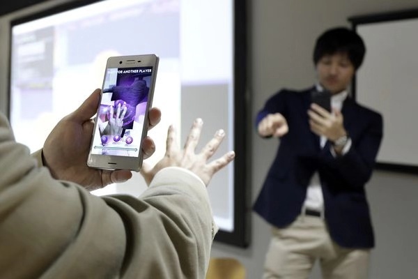 索尼还展示了配置有3D深巷头的定制手机应用。在一款应用程序中,用户通过特定手势操控虚拟游戏。在另一个测试中,手机自动计算出房间的深度,并准确地显示出一条虚拟金鱼在真实物体前后游动。