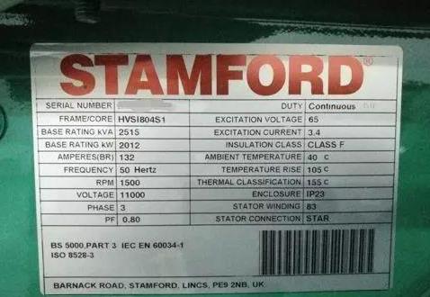 柴油发电机铭牌中包含了柴发很多数据信息,包括:生产时间、使用功率、输出电压、频率、电流、额定转速等,可以为运维提供数据支撑。