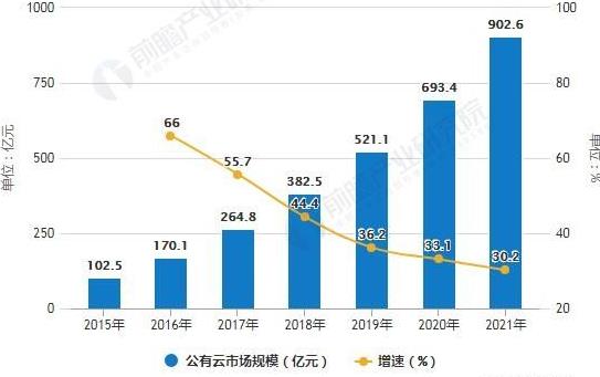 2015-2021年我国云计算整体市场规模统计及增长情况预测